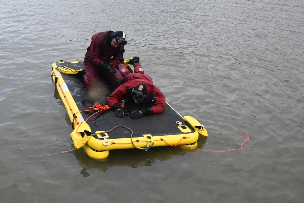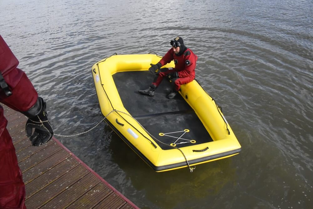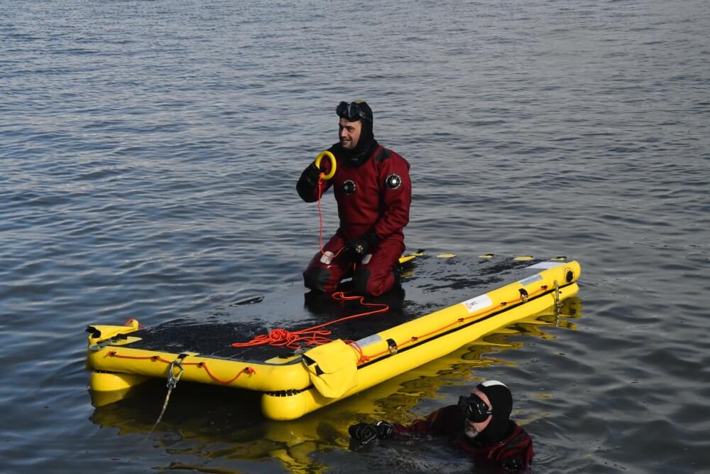 Captain Platteau is always looking for the best equipment to not only facilitate in rescues but also to provide the highest levels of safety for his dive team durings these rescue operations. Also on test was our Evacuation Raft.